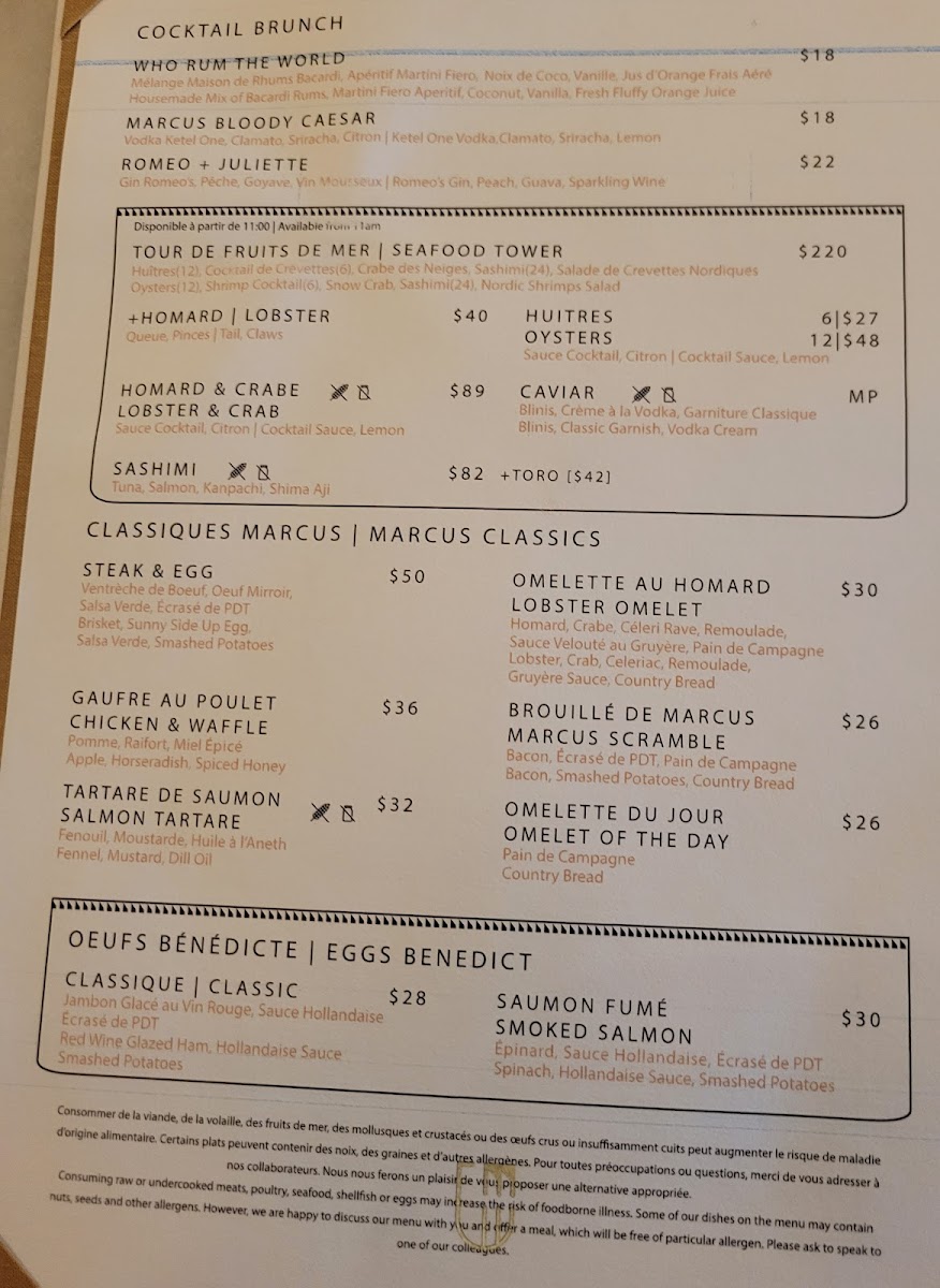 Welcome to MARCUS Restaurant Lounge, a culinary gem nestled within the Four Seasons Hotel in Montreal. This elegant venue offers a menu that beautifully balances comfort and sophistication, featuring an array of breakfast delights that cater to all tastes.